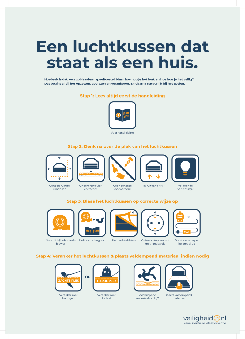 Instructievideo's voor het veilig plaatsen en gebruiken van het springkussen.